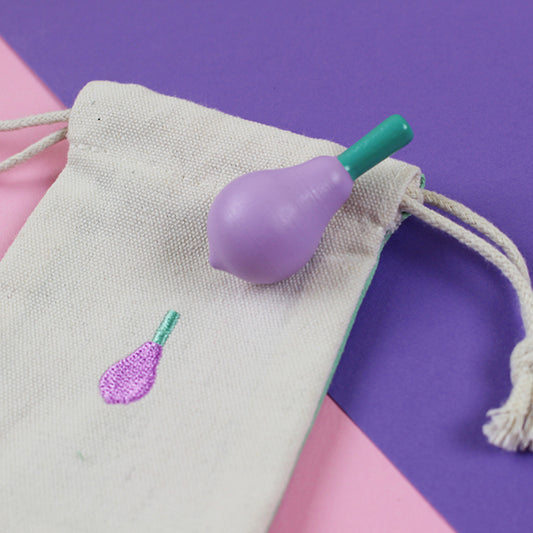 Kreisel gelb/flieder im Stoffbeutel