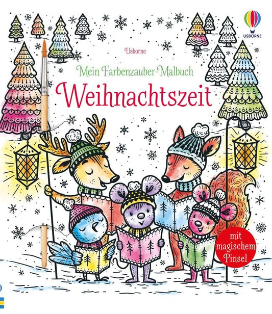 Ausmalspaß ohne StifteTauche den magischen Pinsel ins Wasser und male damit die schwarz-weißen Waldszenen auf...