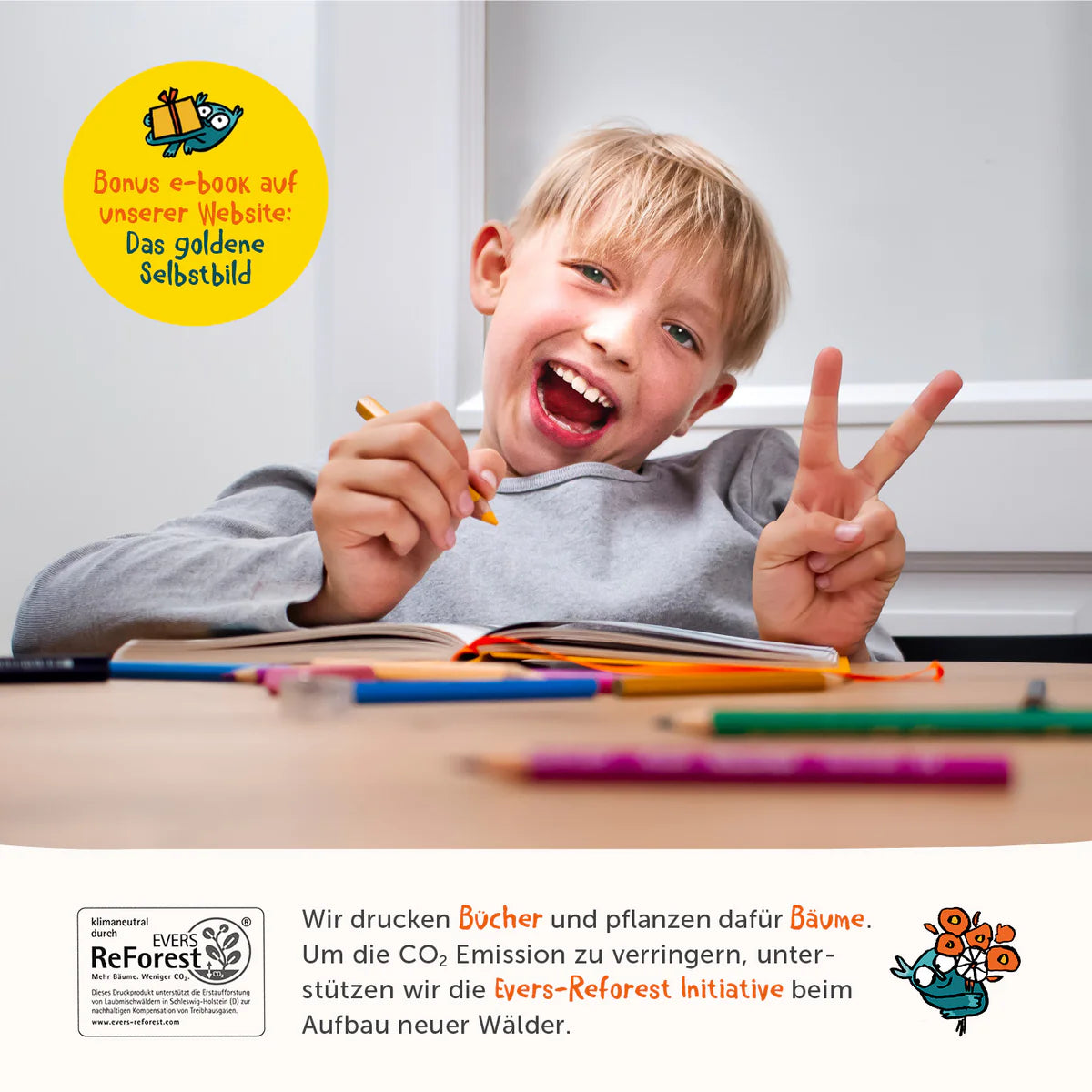 - Beim Kauf eines 6-Minuten-Tagebuchs für Kinder gibt es das E-Book „Das goldene Selbstbild" kostenlos dazu. Darin enthalten sind praktische Tipps, das emotionale Wachstum von Kindern zu fordern und zu fördern.