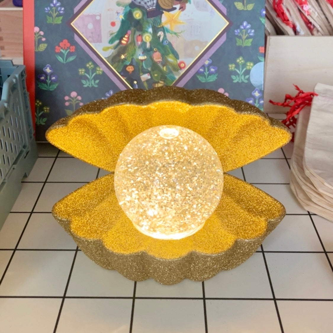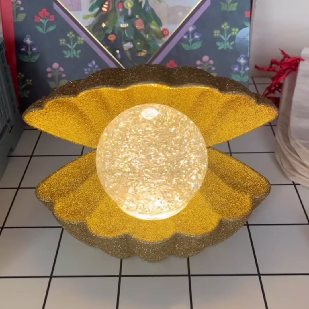 Goldene Muschel Lampe mit Glitzer