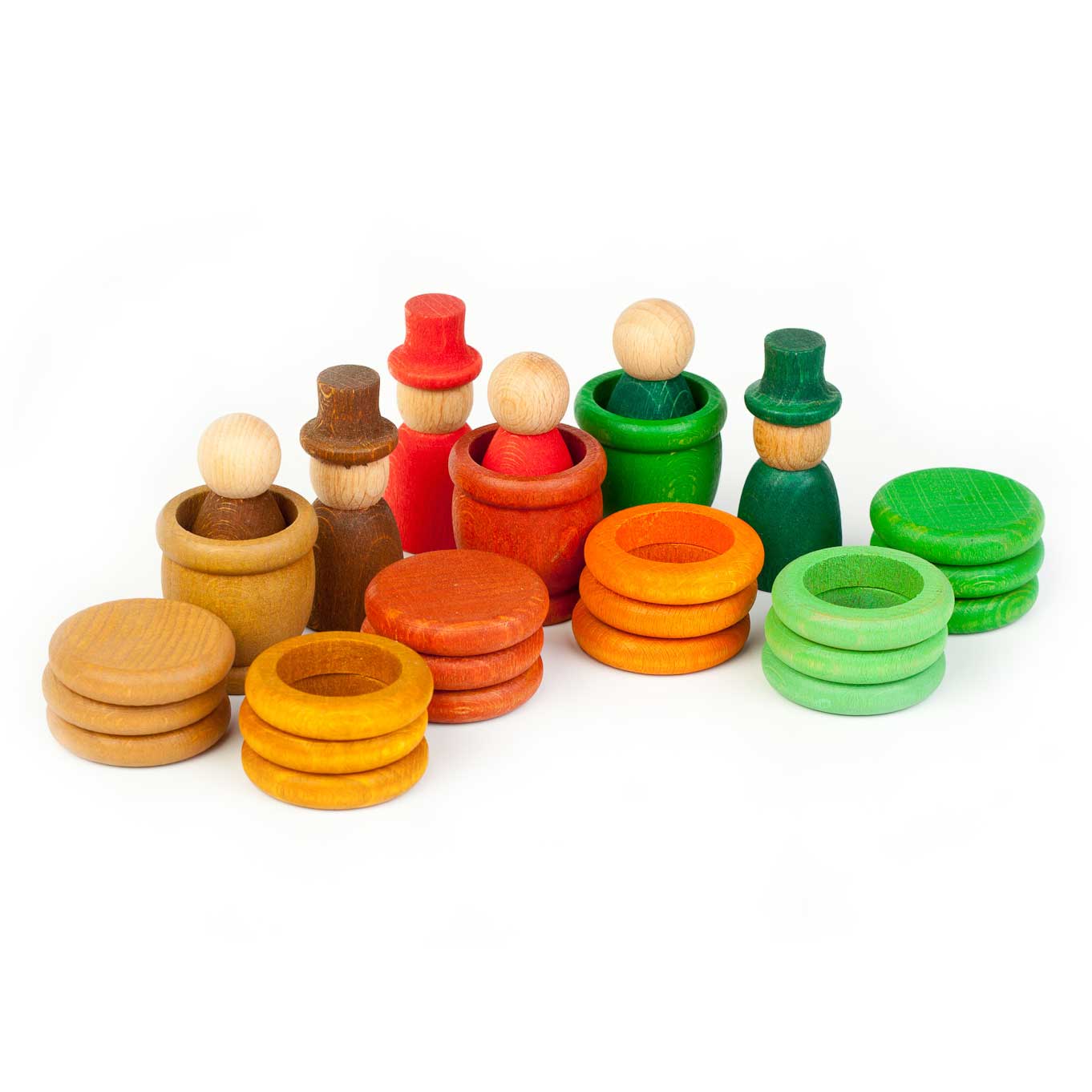 Das wunderschöne und praktische Set aus den beliebten Klassikern von Grapat besteht aus 3 Holzmenschen, 3 Zauberer, 3 kleine Töpfe, 9 Ringe und 9 Münzen in sommerlichen Farben.