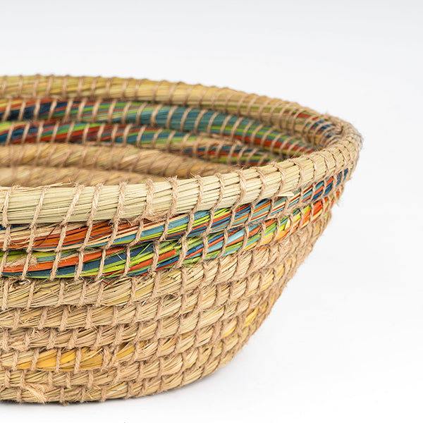 Dieses Tablett aus natürlichem Kaisagras bietet die perfekte Kombination aus Nachhaltigkeit und Design. Es wurde von Dhaka in Bangladesh handgefertigt und mit jahrelanger Erfahrung von überwiegend weiblichen Handwerkenden in liebevoller Arbeit geflochten. Das Korbflechten bietet ein sehr wichtiges, verlässliches Einkommen, welches es den Frauen bei Dhaka ermöglicht, ihre Familien zu unterstützen und unabhängig zu sein.