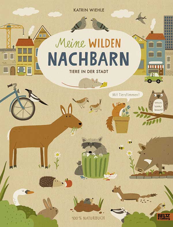 In unseren Gärten und Parks, in Hinterhöfen und auf Dachböden leben viele Wildtiere. Katrin Wiehle zeigt in diesem Wimmelbuch unter anderem, was der Marder in der schützenden Dunkelheit so treibt, wo das Wildschwein Futter findet und welche geheimen Wege die Igel nutzen. Leicht verständliche, kurze Texte erklären, wie sich die Tiere an das Leben mit den Menschen angepasst haben und wo sich unsere Lebensräume überschneiden. Auf www.beltz.de/wildenachbarn kann man sich die Tierstimmen von Waschbär, Nutria, Eichhörnchen & Co. anhören. Die 100% Naturbücher sind im Bewusstsein für Umweltschutz und Nachhaltigkeit, mit Ökofarben auf Recyclingpapier gedruckt.