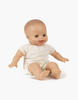 Süße Puppe mit Weichkörper aus Baumwolle und Glieder aus Vinyl.