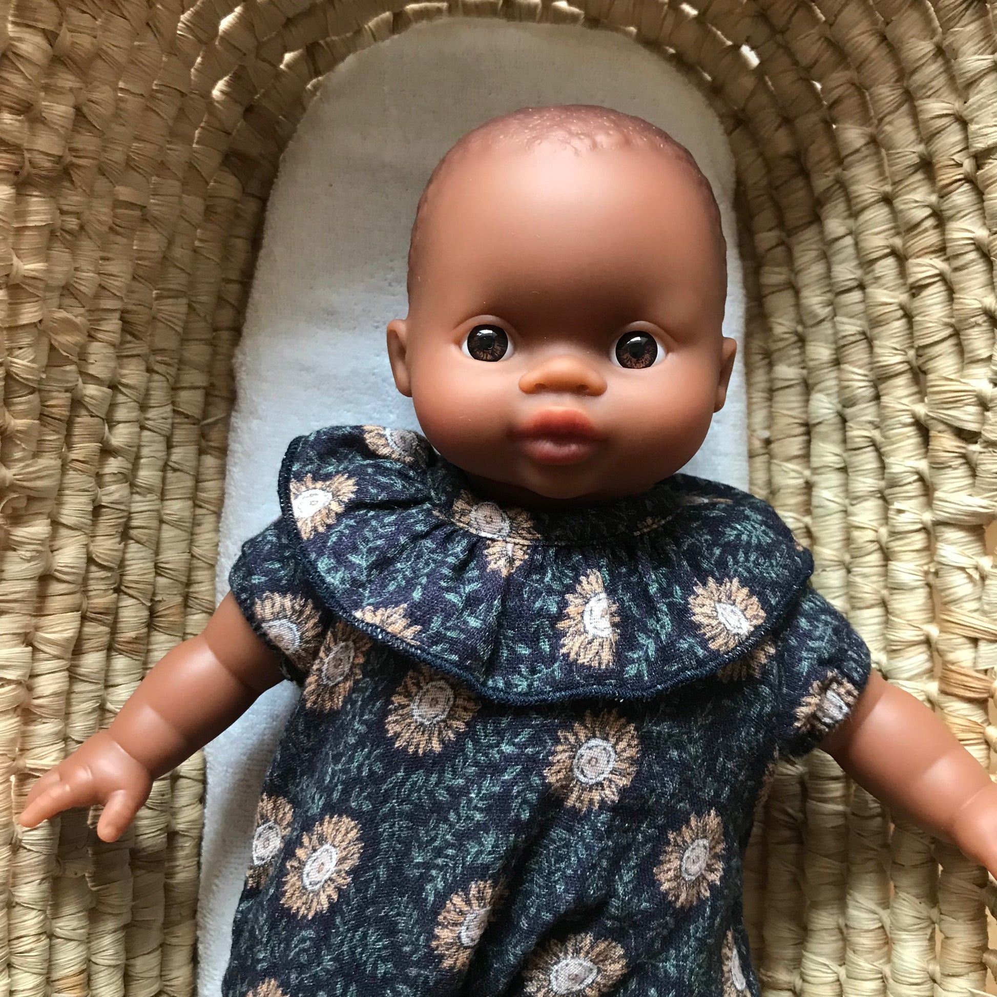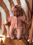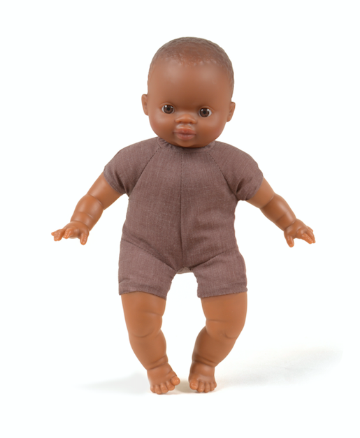 Süße Puppe mit Weichkörper aus Baumwolle und Glieder aus Vinyl.