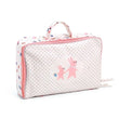Baby Vanille hat alles, was es braucht, um sorgenfrei auf Reisen zu gehen. Im Koffer befinden sich ein Schlafanzug samt Mütze, Klamotten zum Wechseln, eine Windel, eine Babyflasche und ein Lätzchen.