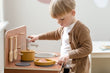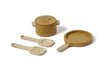 Das Topf & Pfanne Set besteht aus 4 Teilen. Das Set enthält einen Topf mit Deckel, eine Pfanne, einen Löffel und einen Spatel. Das Set besteht aus