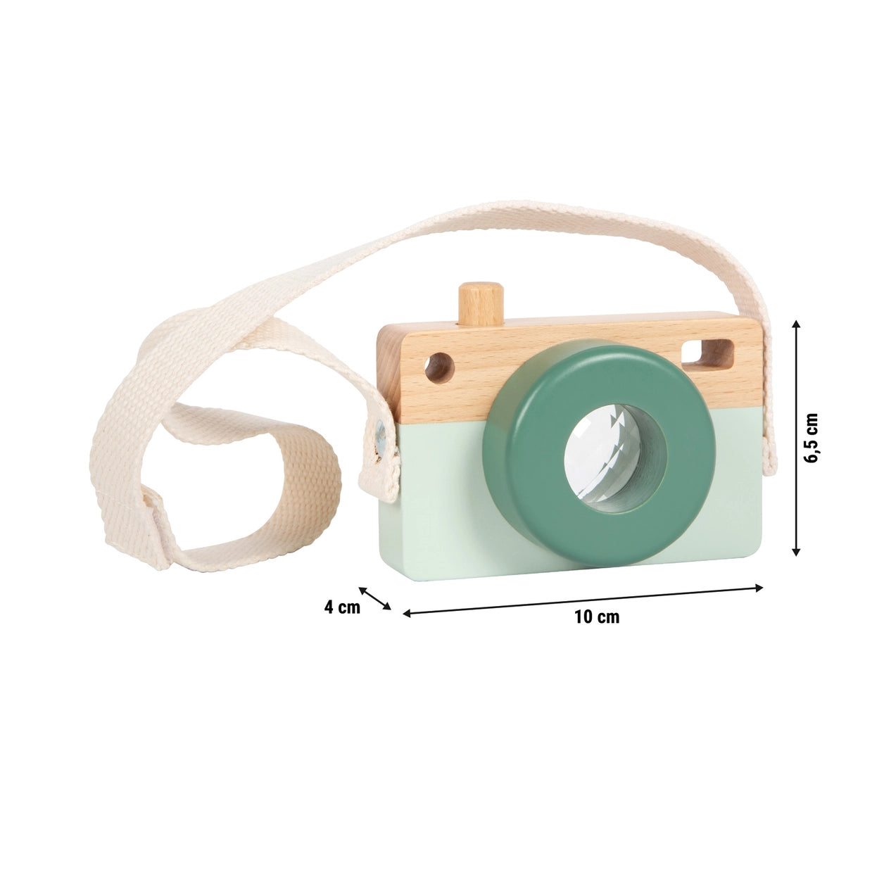 Einmal lächeln, bitte! Diese niedliche Spielzeugkamera aus FSC® 100%-zertifiziertem Holz begeistert kleine Abenteurer:innen mit einem tollen Kaleidoskop-Effekt, beweglichem Auslöser-Knopf und praktischer Schlaufe. Ganz ohne Batterien lädt sie Kinder dazu ein, im kreativen Rollenspiel in die Rolle kleiner Fotograf:innen zu schlüpfen und die Welt mit neuen Augen zu entdecken.
