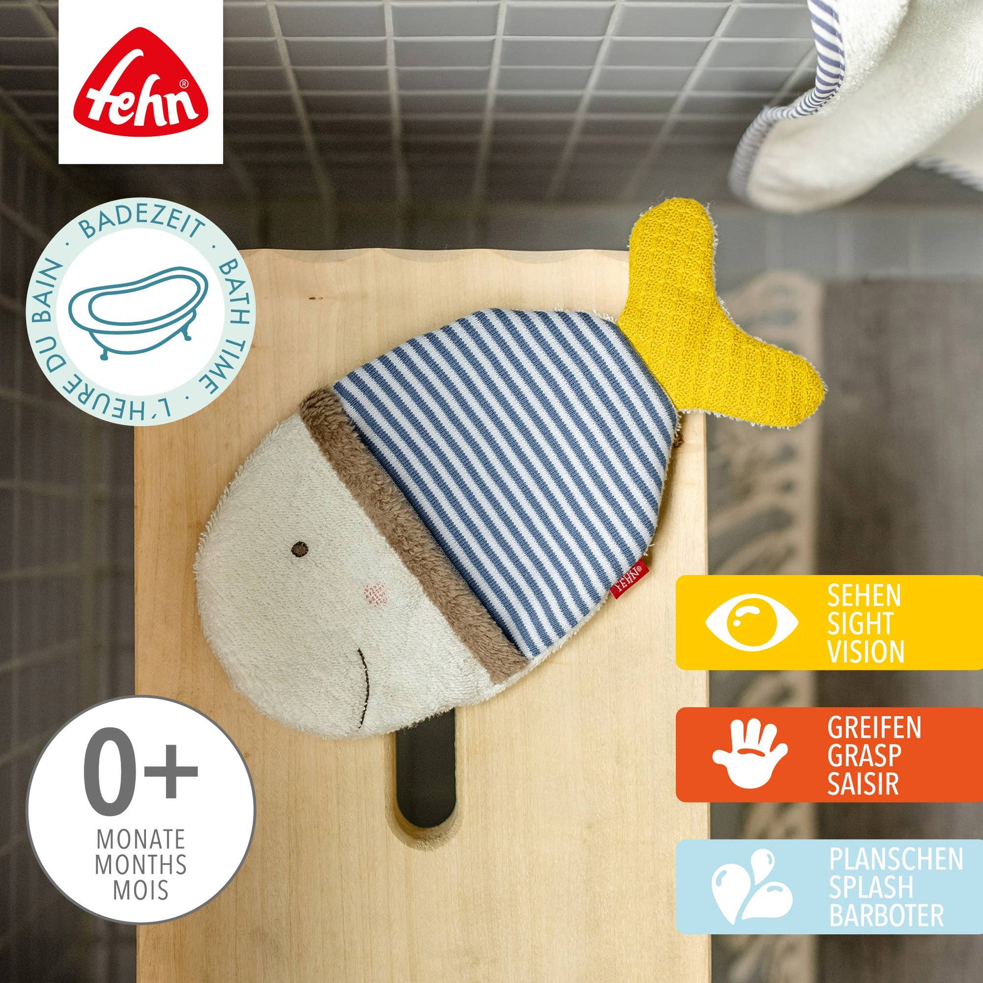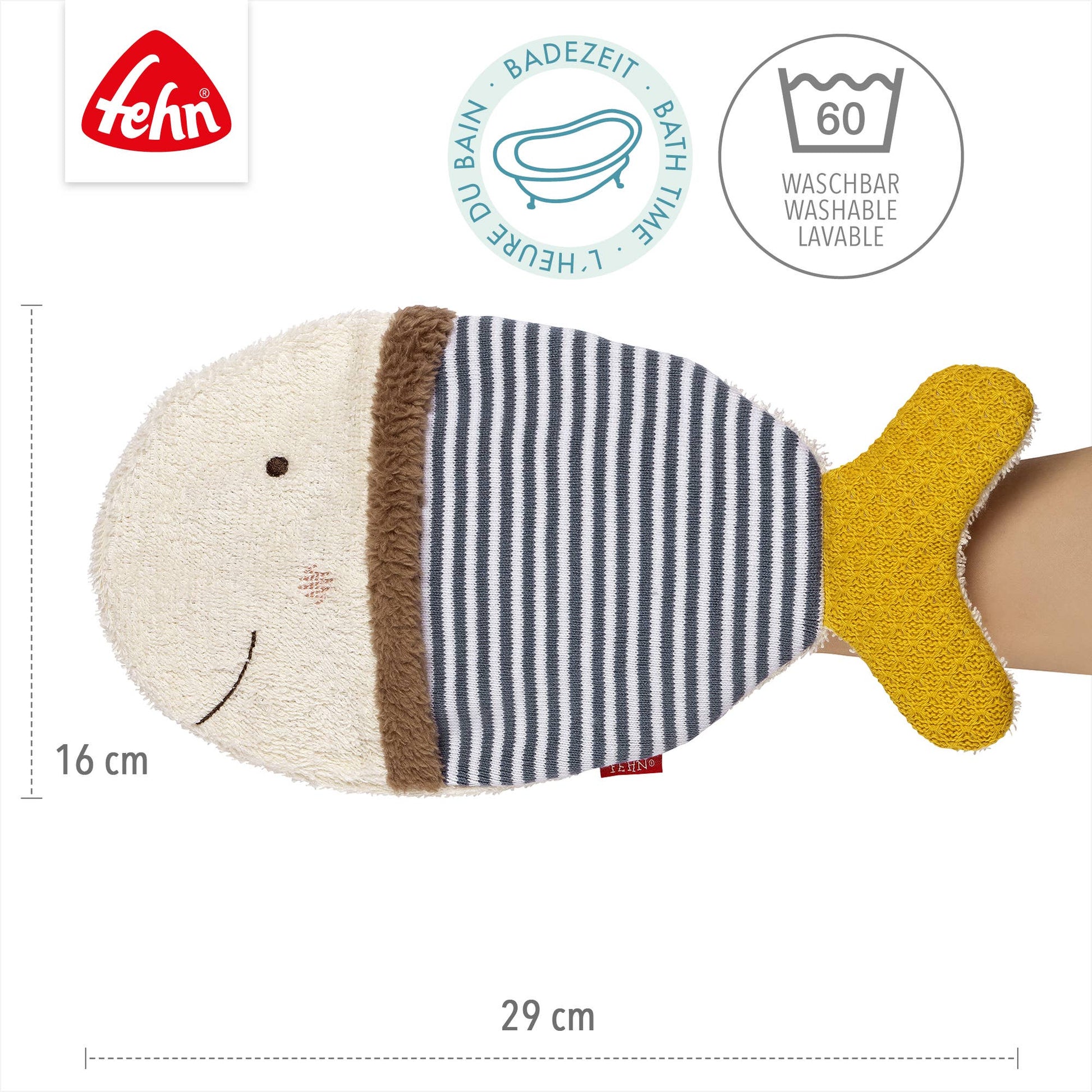 Dieser niedliche Waschhandschuh sorgt mit weichem Material und tollen Farbakzenten für den ultimativen Badespaß. So wird das tägliche Waschen zum Vergnügen für jedes Baby. Der Babywaschlappen kann nicht nur zum Baden sondern auch als Handpuppe verwendet werden – einfach übergezogen wird der Fisch schnell zum Leben erweckt. Der kuschelweiche Handtuchfrottee ist besonders weich zu Babys Haut und reinigt ganz schonend und mit jeder Menge Spielspaß.